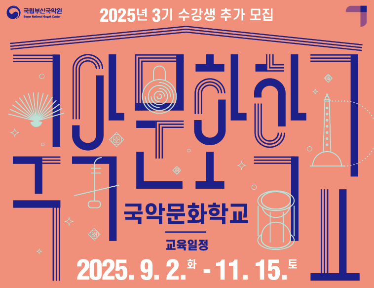 north_east기간 : 2025-06-04 ~ 2025-08-23대상 : 270 명 2025년 국악문화학교 2기 수강생 모집